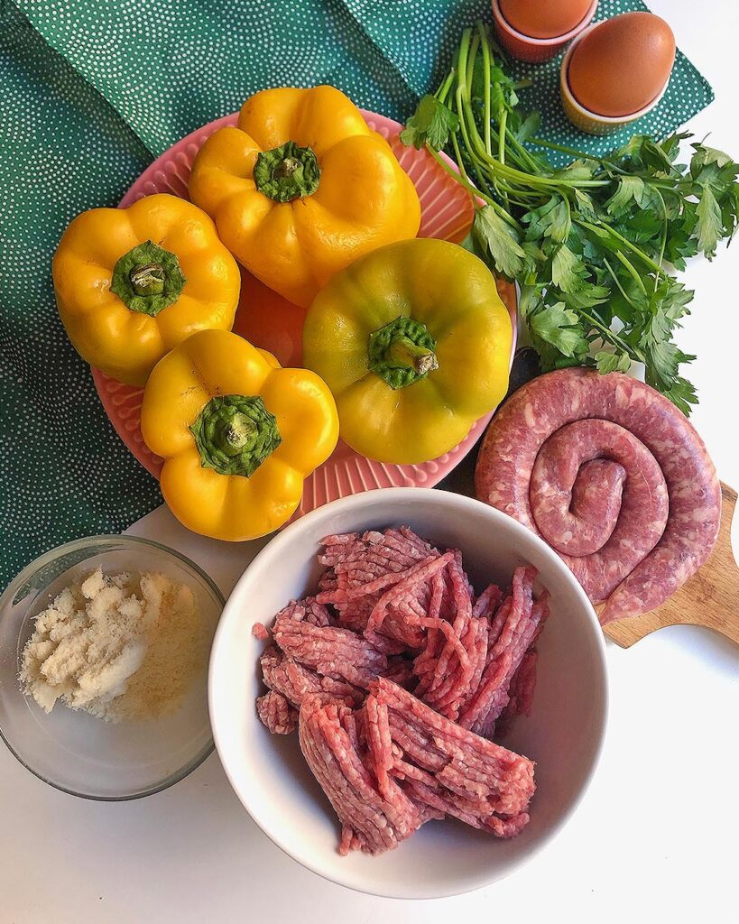 For this recipe I prefer to use yellow bell peppers because they have a perfect color and are sweeter. Pay attention to the shape at the time of purchase: it is better that they are of medium size (so they cook better) and that they stand up well (so it will be easier to put them in the pan)